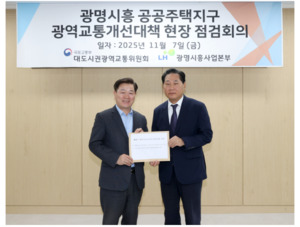 박승원 광명시장이 광명시흥 3기 신도시의 성공적인 조성과 수도권 서남부 교통난 해소를 위해 신속한 광역교통개선대책 추진을 촉구했다.박 시장은 7일 오전 한국토지주택공사(LH) 광명시흥사업본부에서 김용석 대도시권광역교통위원장과 LH 관계자를 만나 광명시흥 공공주택지구 광역교통개선대책 추진 현황을 점검하고 관계기관 협의가 지연된 사업의 해결 방안을 논의했다.박 시장은 “광명시흥 3기 신도시 발표 당시 정부가 약속한 ‘선교통 후입주’ 원칙이 반드시 지켜져야 한다”며 “광역교통개선대책을 조속히 추진해 신도시 입주 전에 교통 불편이 최소화될